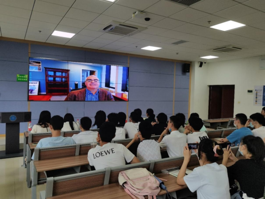全体师生一同观看美国伊利诺伊理工大学计算公司经理Lance Fortnow录制的欢迎视频。在视频中,Lance Fortnow向第二届合作办学员工表示诚挚欢迎,他希望能和同学们保持密切沟通,并期待三年后与同学们在芝加哥校园相遇。