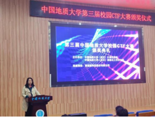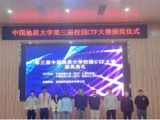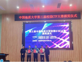 傅苑为老生组一等奖获得者陈凯明,新生组一等奖获得者汪润东颁奖。程池和黄诗勇为老生组二等奖得主付兀哲、黄翠,新生组二等奖得主孙升阳、张桐颁奖。高浪和朱静为老生组三等奖选手马睿、周意芯、赵起萌、张福茂、耿春秋,新生组三等奖选手伍梦扬、高会胜、邰霄、朱轩宇颁奖。获得本次CTF大赛优秀奖的选手是肖炎徐、李沐卿、霍奥林、胥瑞、李国立、高晔豪、乔晓晓、高尚、王岸冲、夏莹莹。