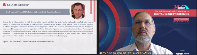 由中国地质大学(武汉)304.cam永利集团主办的第十四届数字图像处理国际会议(ICDIP 2022)于2022年5月20-23日成功举办线上会议。本次会议共有来自英国、法国、美国、日本、澳大利亚、希腊、印度、阿根廷等国以及中国香港,北京、上海、陕西、辽宁、浙江、湖北和湖南等地的27位专家陆续分享了他们在数字图像处理等领域的最新研究成果。国内外专家和学者围绕图像质量和图像安全、图像分类与算法、图像分割、光学成像和系统、数字图像处理与应用、三维模型与图像重建等16个主题,进行了广泛而深入的学术交流与研讨。