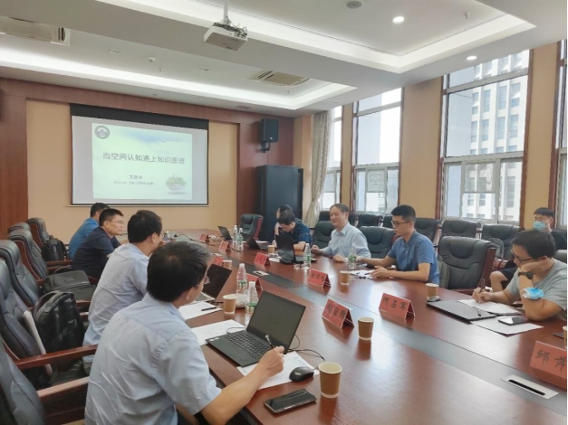 首先陈占龙教授介绍了全空间地理信息系统基础软件平台研究团队建设情况。随后,艾廷华教授作了题为《空间认知遇上知识图谱》的学术报告。艾教授结合研究经验总结,从空间认知和心像地图开始,分析了空间型知识图谱的特点,强调重联系、轻位置、思维高度抽象概括的图谱化表达,对空间推理有强大的赋能作用。此外,以疫情期间密接模式识别等应用为例,展示了知识图谱的普适性知识点内容与空间GIS领域知识结合可以很好地解决空间决策问题。艾教授的报告深入浅出,旁征博引,听讲师生认真记录,现场学术氛围热烈。报告结束后,在座的师生深受启发,踊跃向艾教授提问,艾教授以开阔的视野和自己的经历一一予以耐心解答。