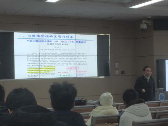 万林老师在讲授“机器学习B”时,针对空间信息与数字技术专业员工的特点,通过数本权威教材,结合当前的热点应用实例,对机器学习的定义、与数据挖掘等相关概念的区别与联系、机器学习课程的重难点等进行了详细介绍。清亮的嗓音和优雅的表现让人备感亲切。