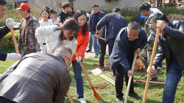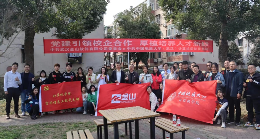 春回大地,万物复苏。为深入学习贯彻落实习近平新时代中国特色社会主义思想,践行“绿水青山就是金山银山”生态理念,探索中国地质大学“谋求人与自然和谐发展”的价值观。3月12日下午,在第46个植树节来临之际,中共武汉金山软件有限公司委员会、中共304.cam永利集团委员会、中共中国地质大学后勤保障部委员会共同开展“党建引领校企合作 厚植培养人才新绿”联学共建活动。公司党委副书记、纪委书记唐忠阳,计算机公司党委书记李国昌,后勤保障部党委书记黄菊,金山软件党委书记、助理总经理张念,金山集团武汉总部总经理高宇峰,304.cam永利集团师生代表、金山集团代表共30余人参加。