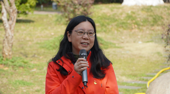 黄菊介绍植树期间注意事项。她说后勤党委对此次活动高度重视,并提供全力支持,希望双方能不断探索校企的深度融合模式,充分发挥校企协同育人优势,达成共同培养人才目标。