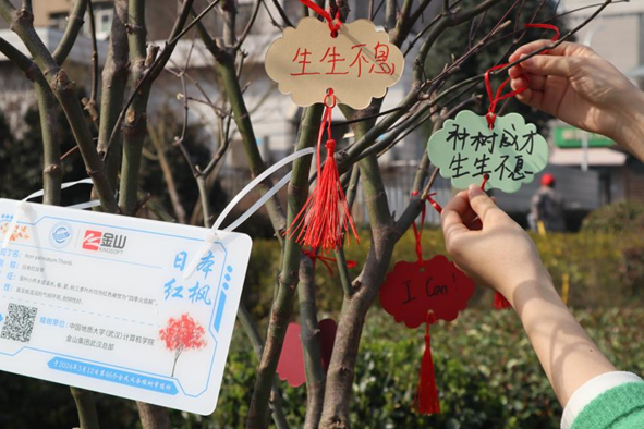 高宇峰表示,三棵生机勃勃的红枫树代表着金山与地大的校企合作像红枫树一样有顽强的生机和活泼的生命力、成片红枫树代表共同培养出成林的人才、更代表与地大共同发展的美好前景,希望这三棵红枫树能为地大校园增添不一样的静谧的色彩。“一生二,二生三,三生万物。”三棵红枫树能让未来的合作一往无前,且生生不息地给未来的合作带来美好的希望。