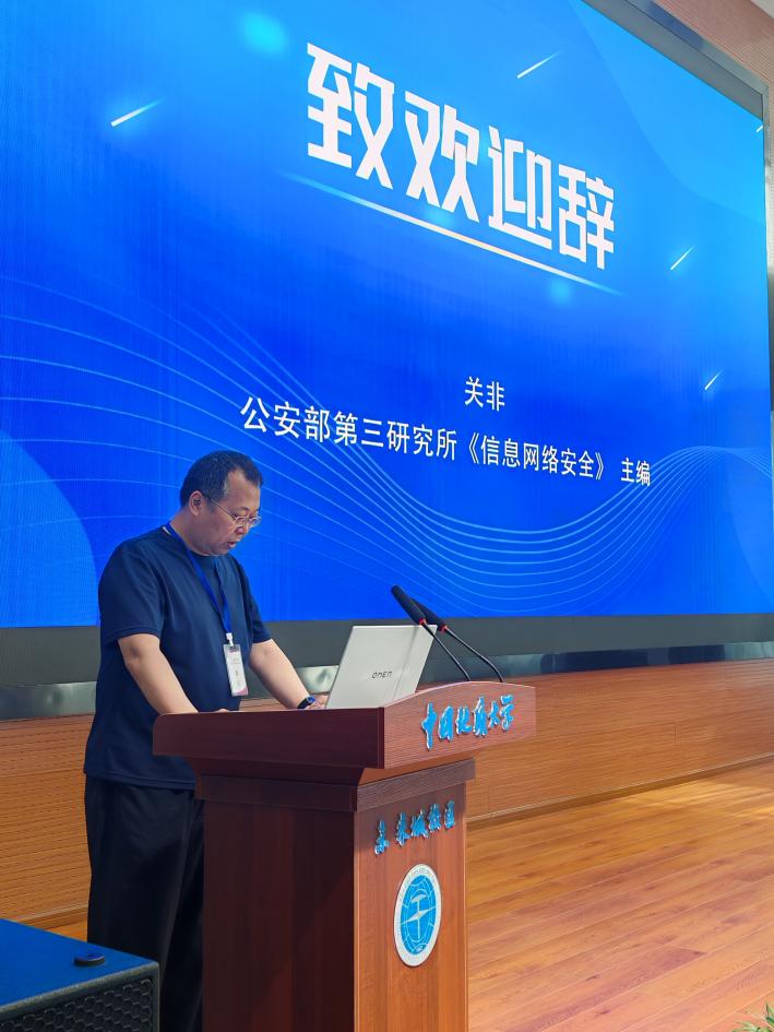 《信息网络安全》主编关非致辞。关主编表示,随着量子计算技术的发展,信息安全面临着前所未有的挑战与机遇。抗量子密码作为应对这一挑战的关键手段,正日益受到学术界和产业界的重视与关注。希望通过举办此次研讨会,能够为学术界、产业界提供一个共同交流、深入研讨的平台,推动网络安全领域的技术创新和学术研究。