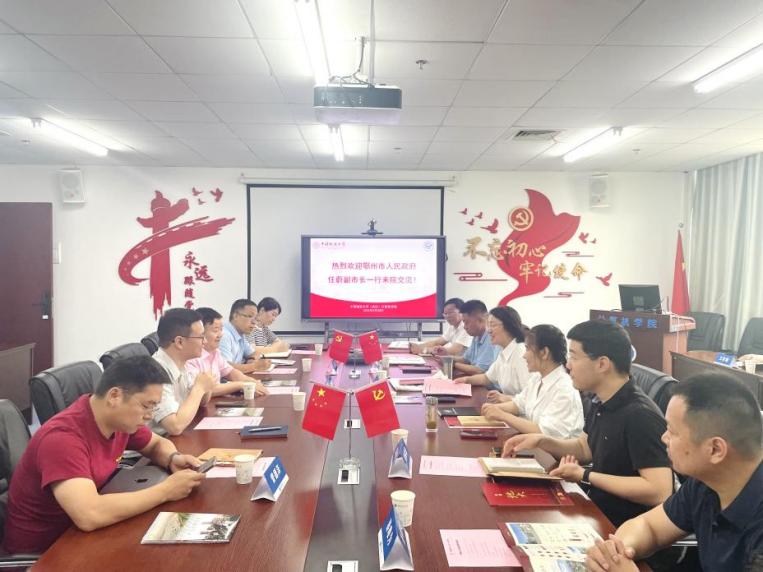 5月20日,鄂州市人民政府副市长、华容区委书记任蔚,华容区人民政府副区长陈瑶一行来304.cam永利集团开展调研,未来城校区管理办公室主任王文起、计算机公司党委书记李国昌、经理张洪艳、党委副书记林小艳、副经理陈占龙、副院长曾德泽参加座谈。李国昌书记主持座谈会。