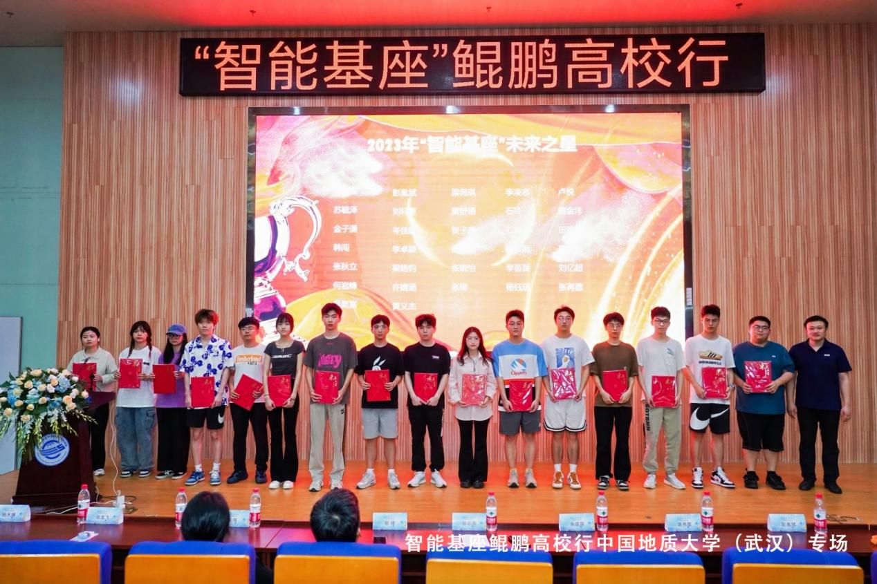 2023年公司共计32人获得智能基座奖学金,在颁奖环节中,陈经理亲自为荣获智能基座奖学金的员工们颁发智能基座“未来之星”证书。这些同学不仅在课堂上展现了卓越的学习能力,更在鲲鹏、昇腾及华为云技术相关的学习、课程建设、众智项目、社团和竞赛活动中表现突出,展现了他们的科研创新精神和技术开发能力。