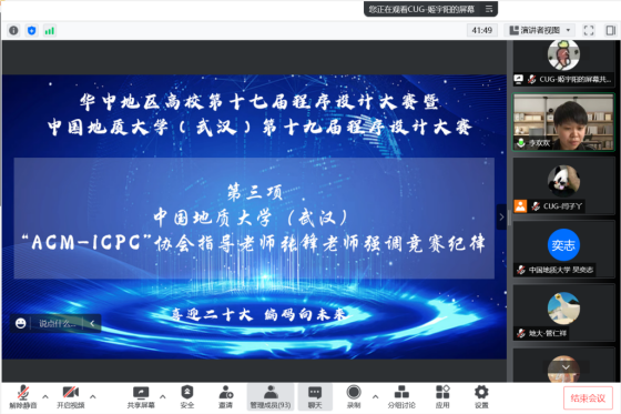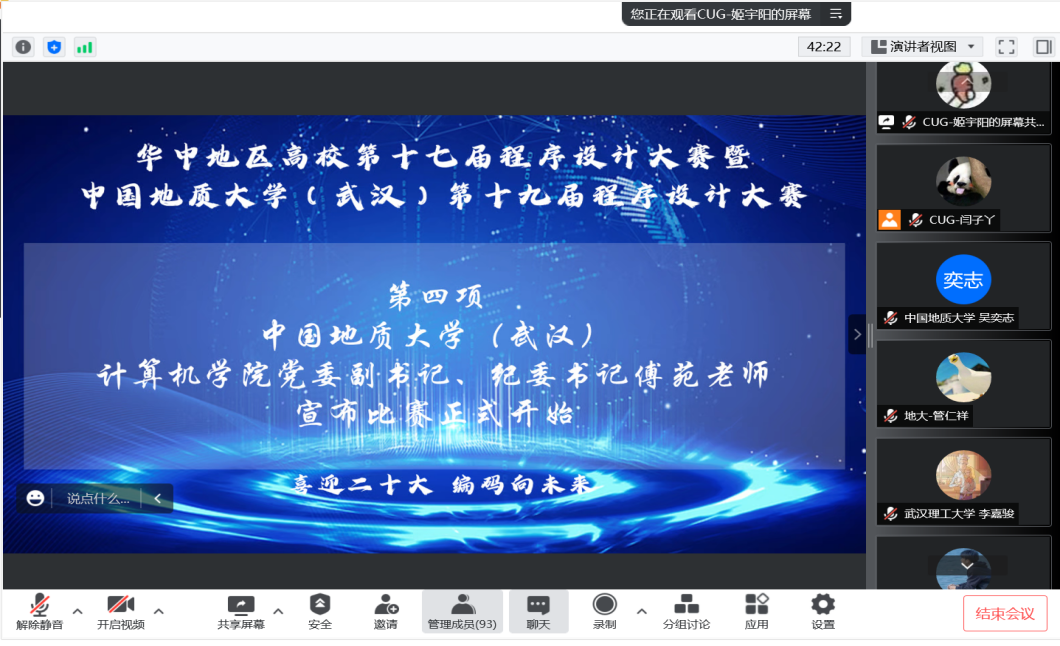 活动伊始,李国昌致开场辞。他代表地大304.cam永利集团向所有参赛选手表示欢迎,介绍了公司ACM系列活动开展情况和“ACM-ICPC”协会的发展历程,2021年协会突破历史,获得ACM-ICPC亚洲区域赛金奖。希望同学们在本次比赛中取得佳绩,在未来学习中立科技兴国之志,谋专业报国之实,争做时代先锋,为实现中华民族伟大复兴贡献青春力量。