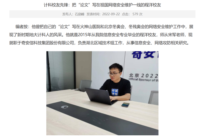 计算机公司党委书记李国昌在课堂上对信息安全系的同学们强调:我们要做维护正义,为国争光的“红客”,坚决不能成为无视底线、知法犯法的“黑客”。计算机公司党委副书记傅苑在“1111”人才培养计划发布会中也分享到:作为“红色信息工程师”,我们在接受个性化、受尊重的培养和关注后,能为我国信息安全事业做出贡献。
